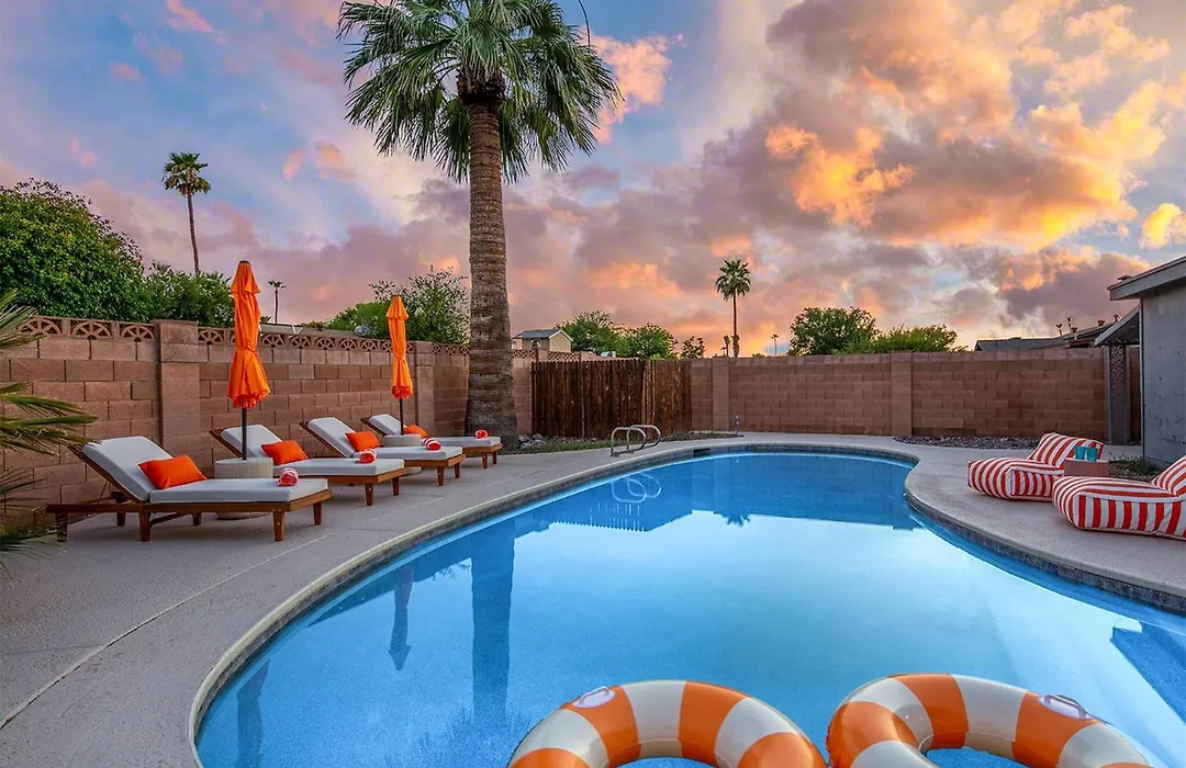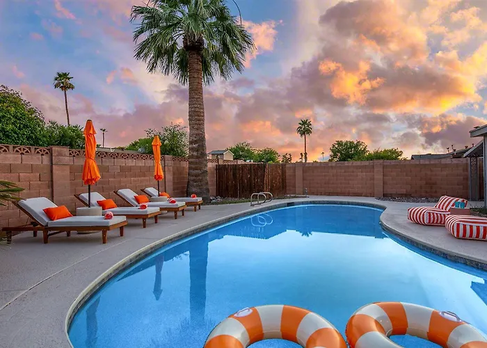 Featuring a private swimming pool for guests' relaxation, Disco Jungle With Fire Pit+Poolside Tv+Yard Games Villa Phoenix is located approximately 2 miles from Paradise Valley Festival Shopping Center.
